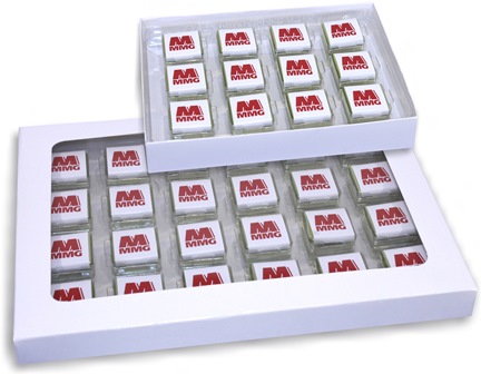 Belgian Chocolate Squares with printed wrappers