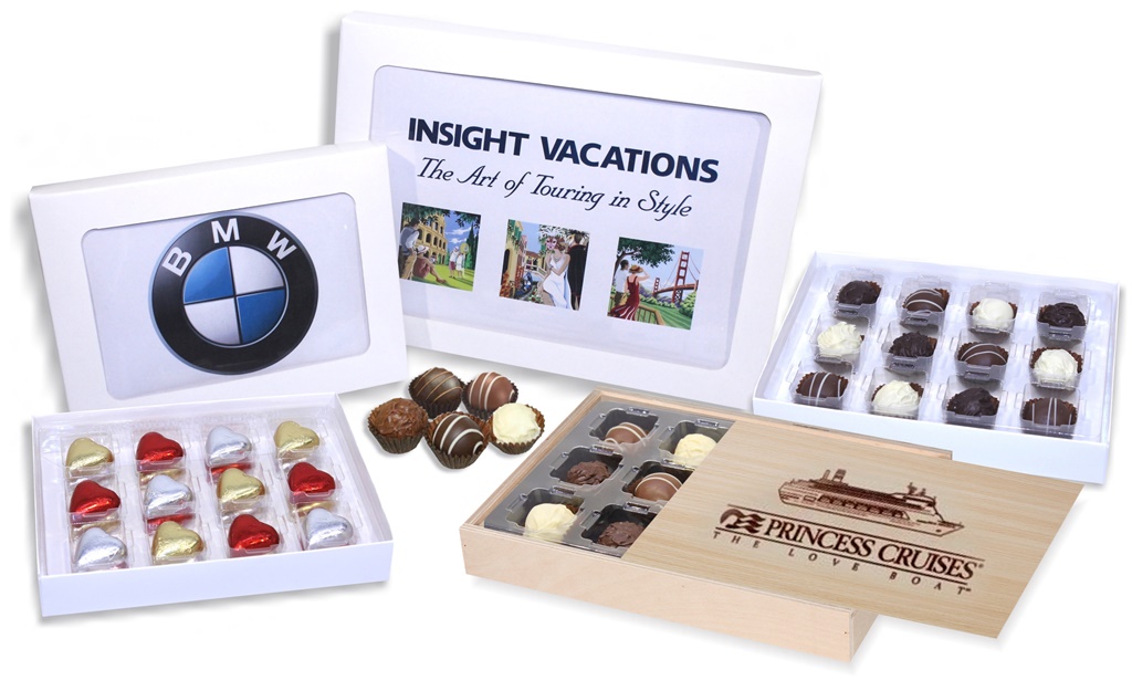 chocolates packaged in gift boxes, which can be