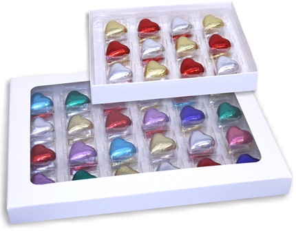 Solid chocolate foiled Hearts.